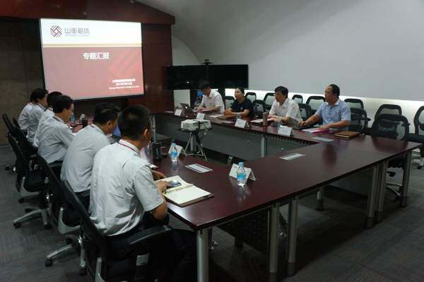 2017年7月14日,山東省省管企業監事會主席、山東重工集團監事會主席楊少軍一行蒞臨山重租賃調研指導工作。公司黨支部書記、總經理梁雪文針對公司經營管理情況和未來發展規劃等作專題匯報。