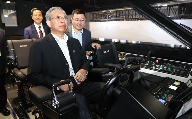 劉家義駐足觀看濰柴海外展品