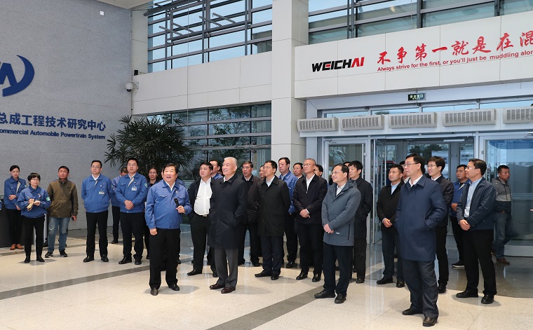在濰柴研發大樓,王志剛聽取了譚旭光關于濰柴科技創新工作的匯報,對濰柴堅持創新驅動、科技引領,持續加大研發投入,推動企業跨越式大發展給予肯定。