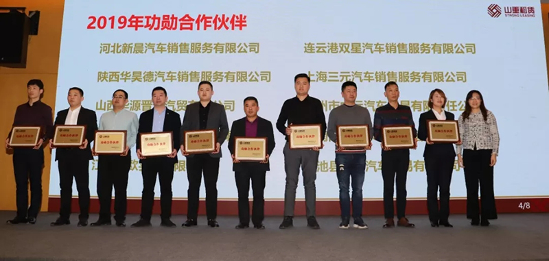 最后,大會舉行了隆重的頒獎典禮,為陜重汽金融服務部頒發了“十年戰略協同合作單位”獎,分別授予38家經銷商“戰略合作伙伴”、“功勛合作伙伴”、“卓越合作伙伴”、“優秀合作伙伴”獎項。