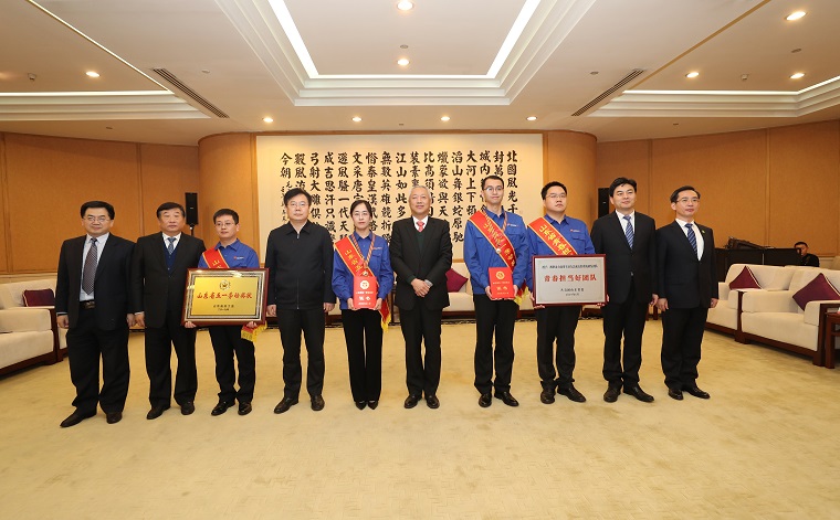 會(huì)前,凌文等領(lǐng)導(dǎo)會(huì)見(jiàn)了濰柴報(bào)告團(tuán)成員,并為濰柴動(dòng)力商用車動(dòng)力總成電控系統(tǒng)研發(fā)團(tuán)隊(duì)頒發(fā)“青春擔(dān)當(dāng)好團(tuán)隊(duì)”獎(jiǎng)牌,為濰柴青年科技創(chuàng)新團(tuán)隊(duì)頒發(fā)山東省五一勞動(dòng)獎(jiǎng)狀,為6名濰柴優(yōu)秀青年科技工作者授予山東省五一勞動(dòng)獎(jiǎng)?wù)拢员碚盟麄優(yōu)樯綎|裝備制造業(yè)發(fā)展做出的貢獻(xiàn)。
