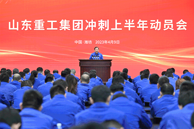4月9日上午10:00,山東重工集團召開沖刺上半年動員大會。譚旭光作動員講話,8家權屬公司作表態發言。集團和各權屬公司領導干部共計2000人線上線下參會。